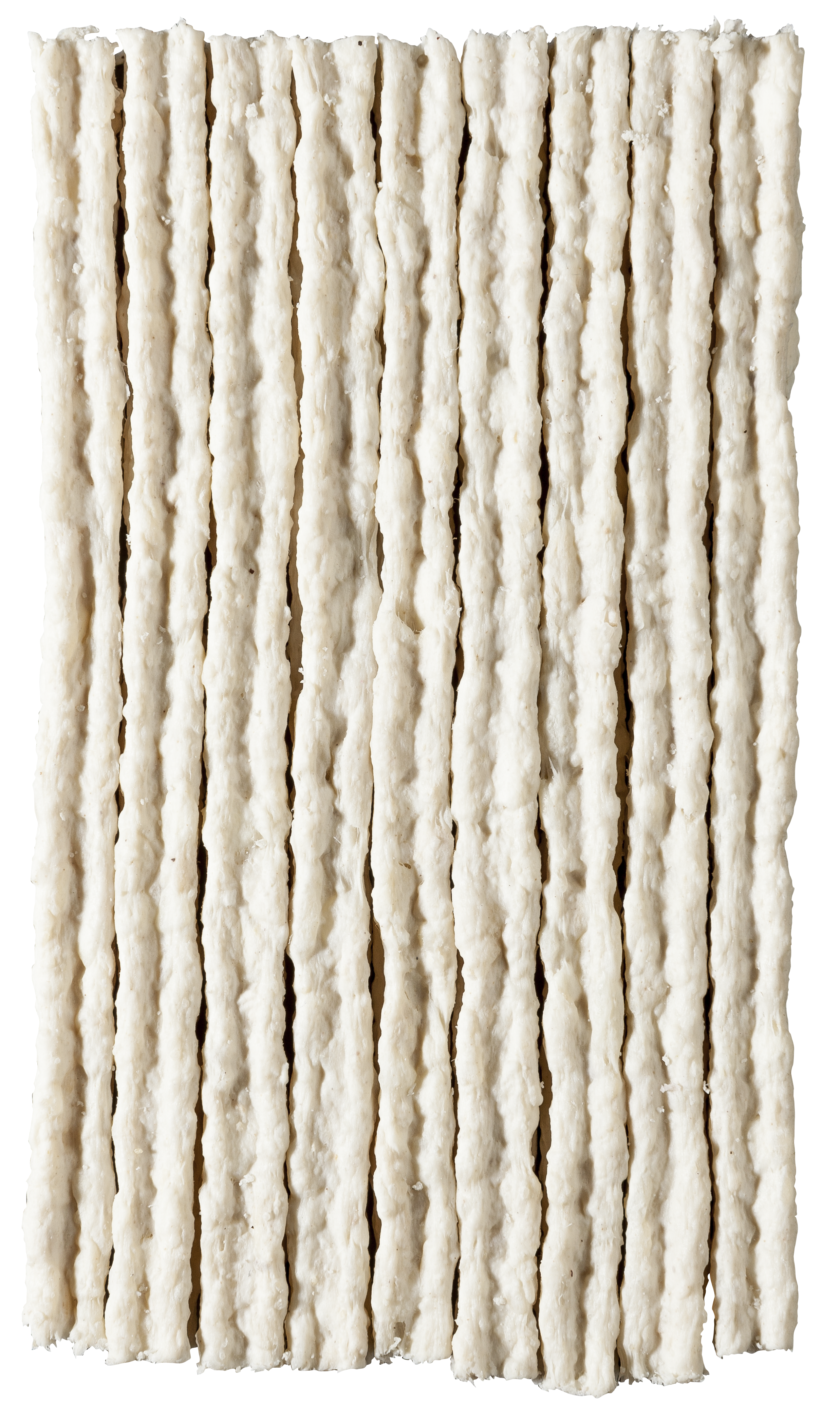 Ingredientes: Raspa de pele conservada de bovino, glicerina, quirera de arroz, farinha de mandioca, farinha de trigo, fécula de mandioca modificada, carbonato de cálcio, sorbato de potássio, propionato de cálcio, pimenta preta (Piper nigrum), aroma de leite.